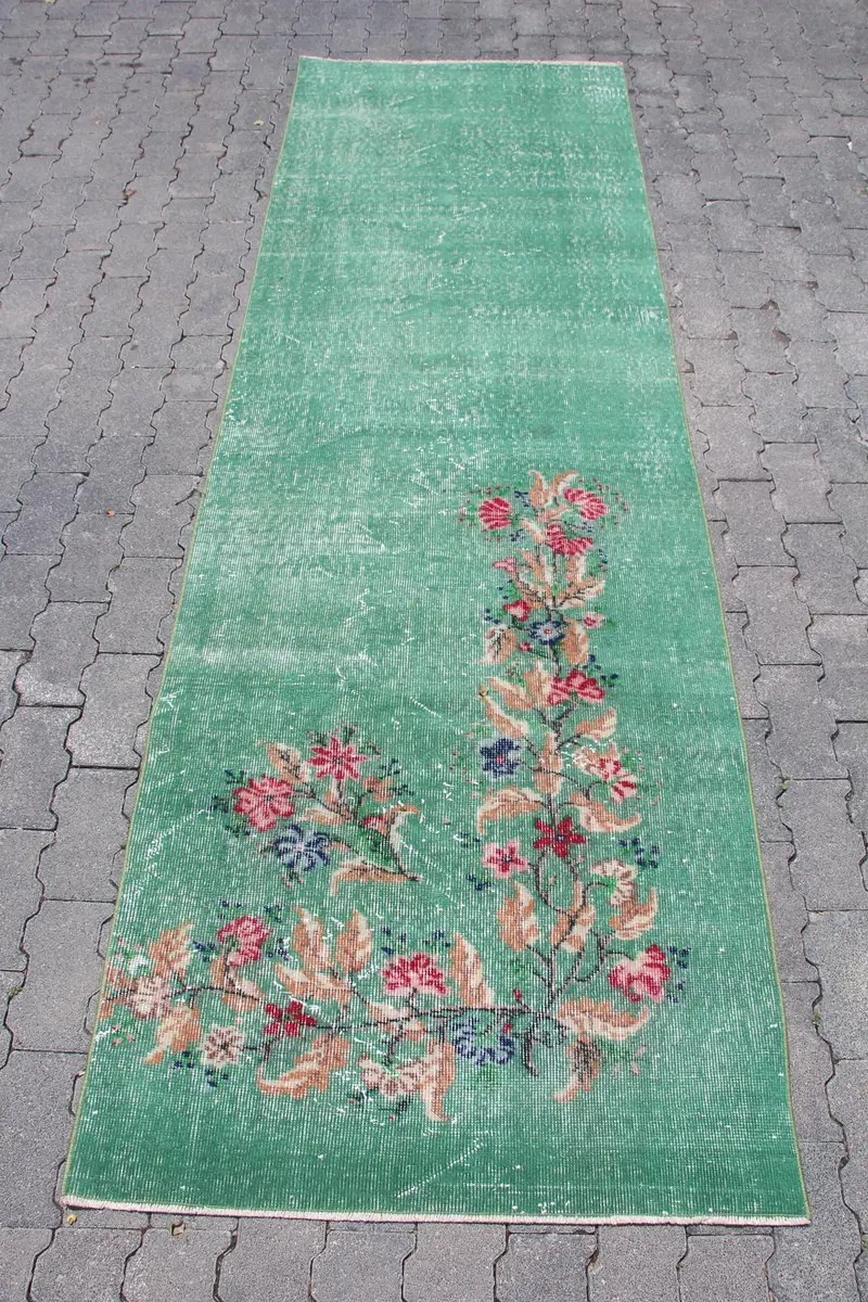 Green, Orange Camouflage Rug, 3x9.4 ft Chic Decor
