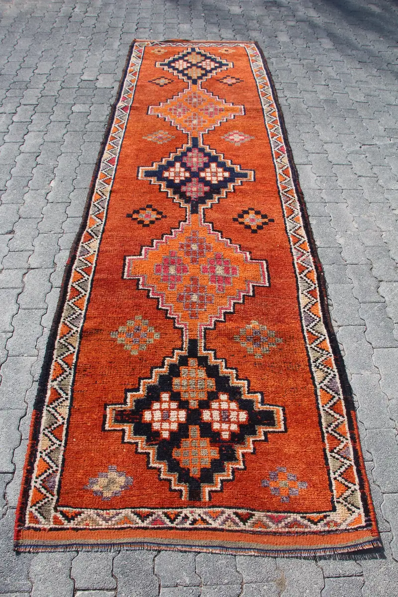 3,3x11,5 ft Rug, Vibrant Orange & Blue Persian Pattern