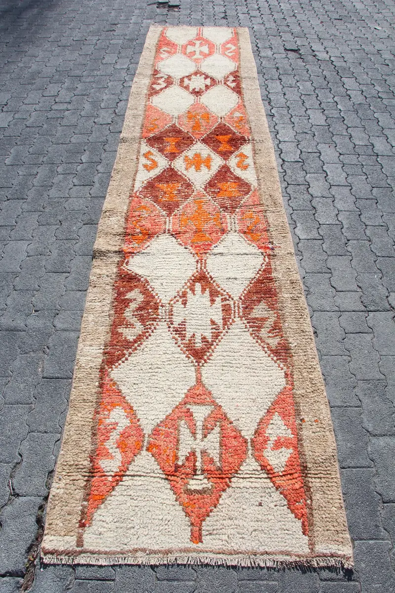Orange & Beige Ikat Rug, 2,8x13,7 ft Chic Decor