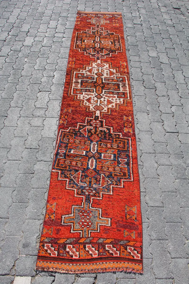 Vibrant Orange & Blue Rug, 2x10,1 ft Persian Pattern