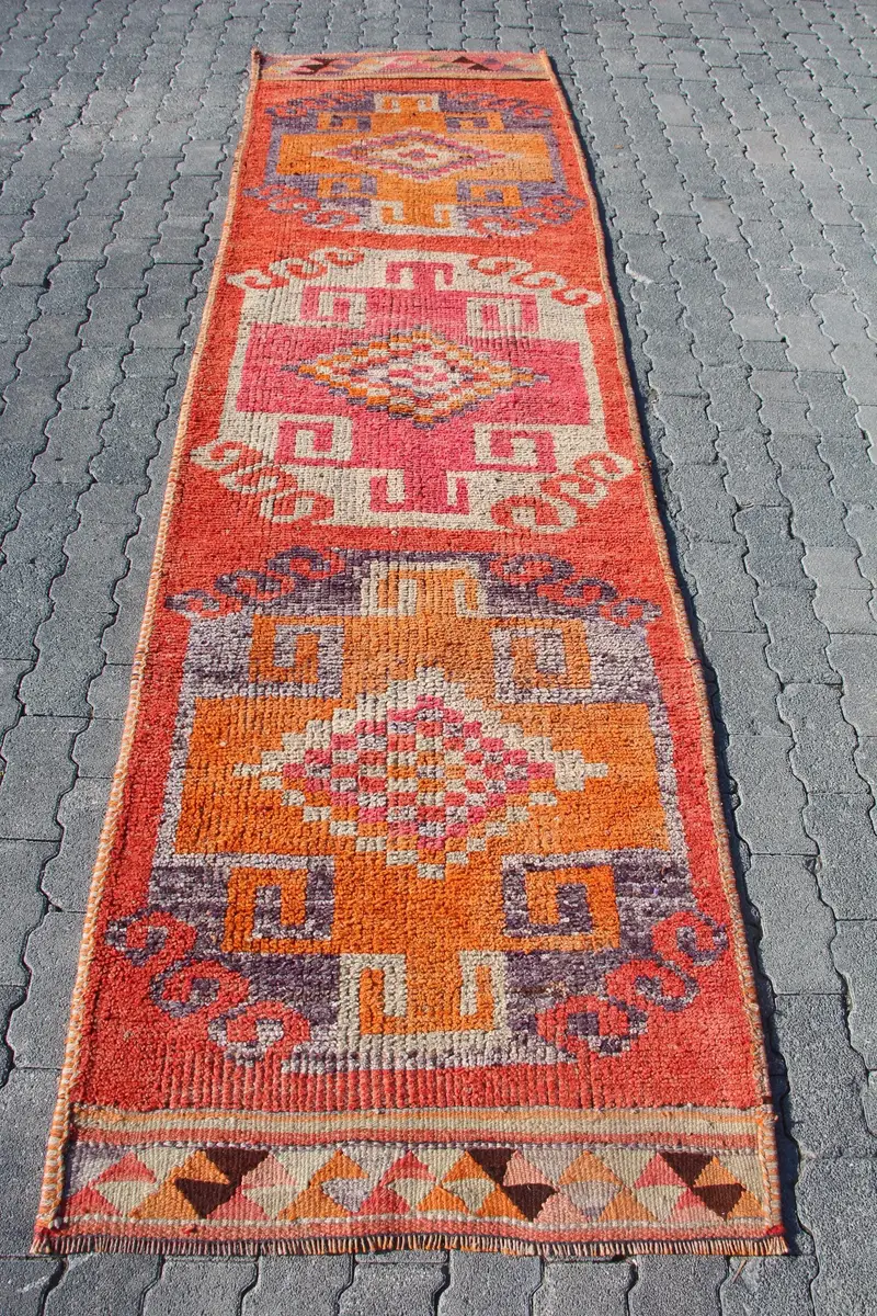 Pink Rug with Red Stripes, 2,9x10,7 ft Chic Decor