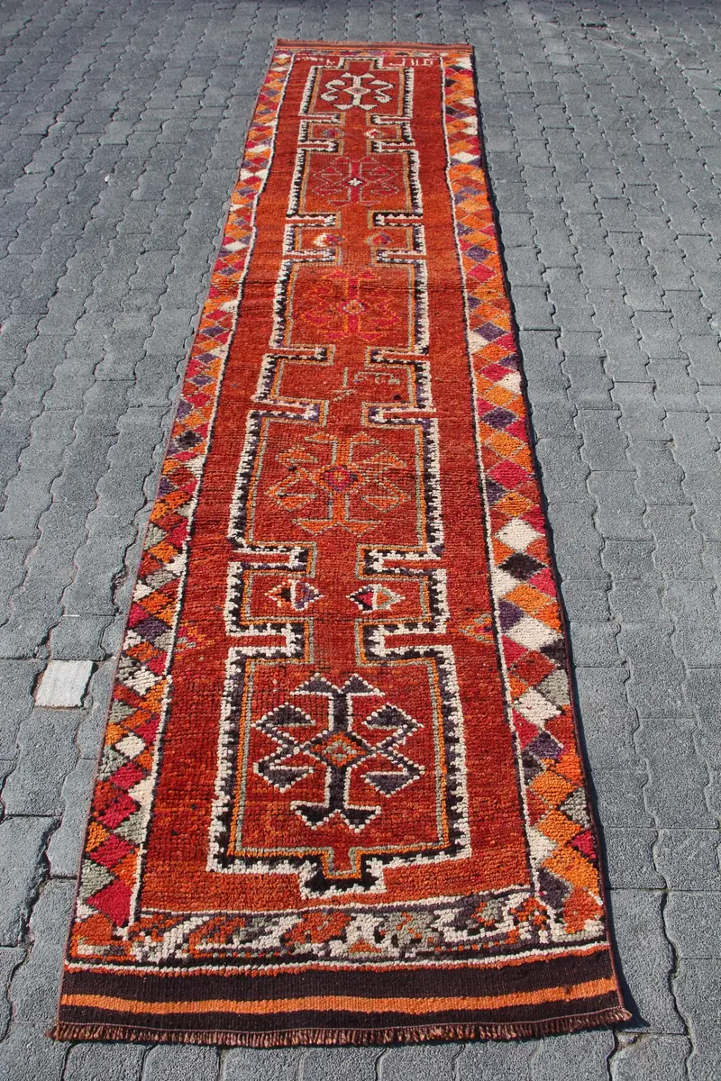 Red Ombré Rug, 2.7x12.6 ft Vibrant Decor