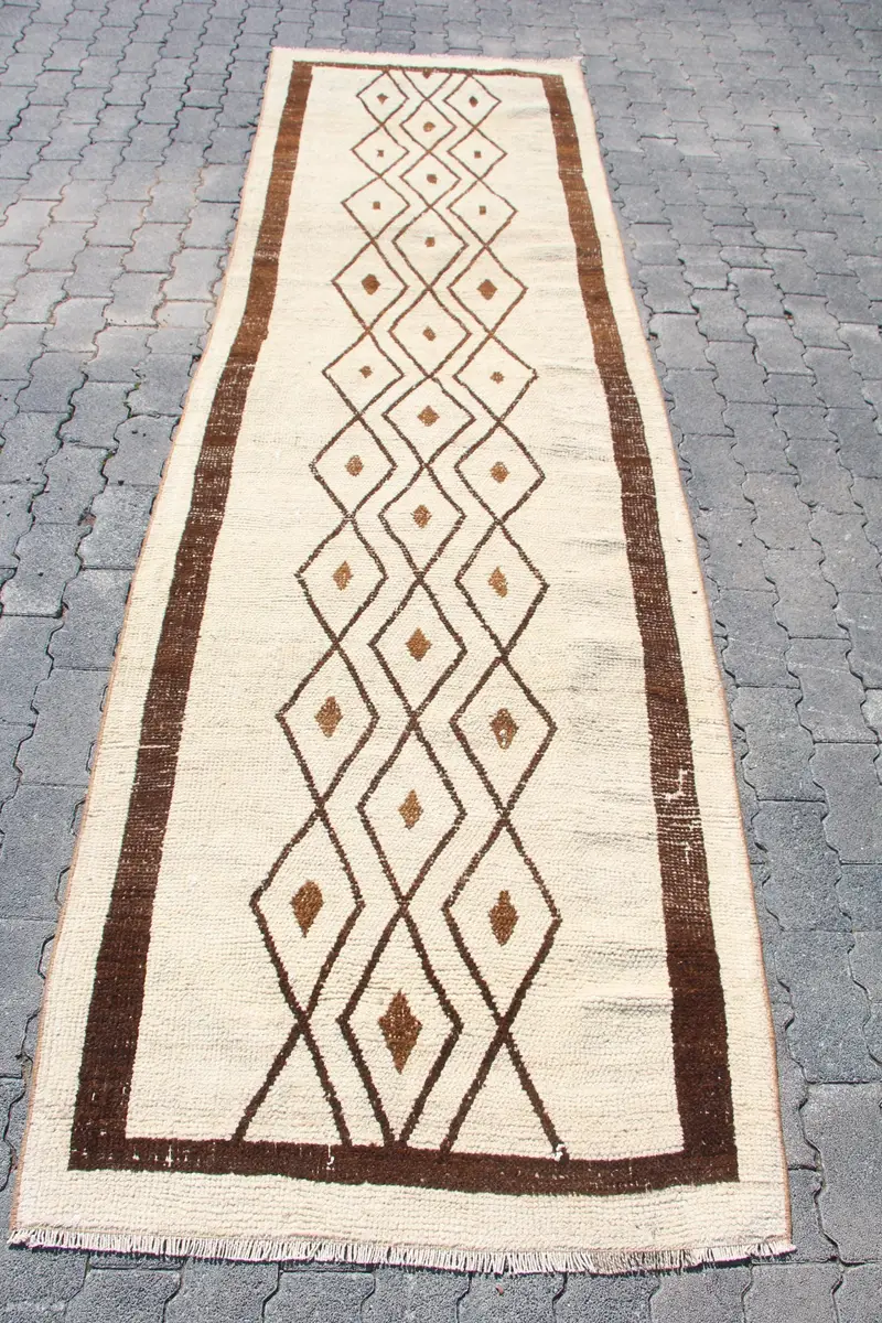 Beige & Brown Rug, 3x10.8 ft Bordered Design
