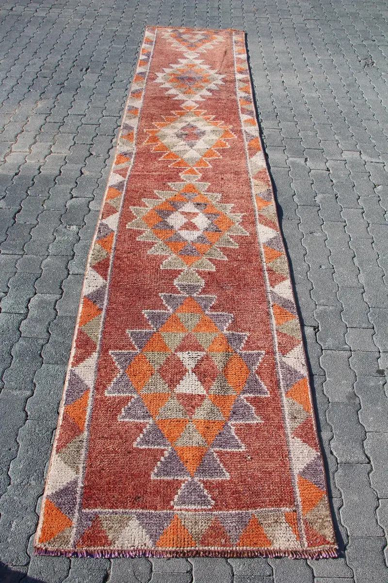Vibrant Orange Rug, 2.7x13 ft Persian Pattern