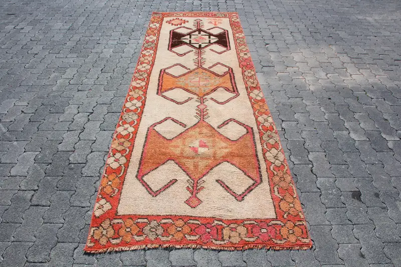 3,4x10,6 ft Beige Camouflage Rug, Chic Red Accents