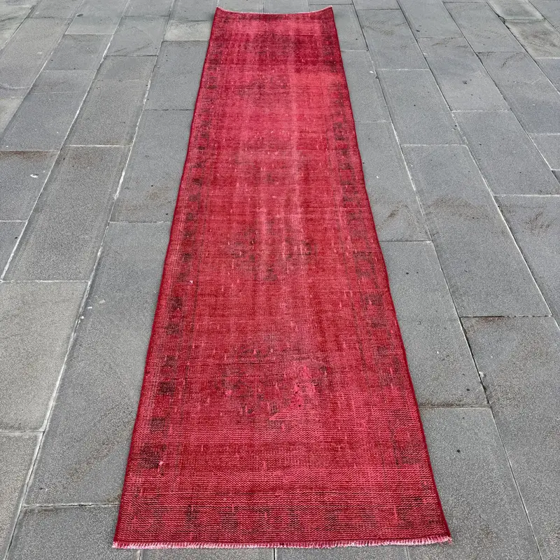 Red Abstract Rug, 2.5x10.6 ft with Black Accents