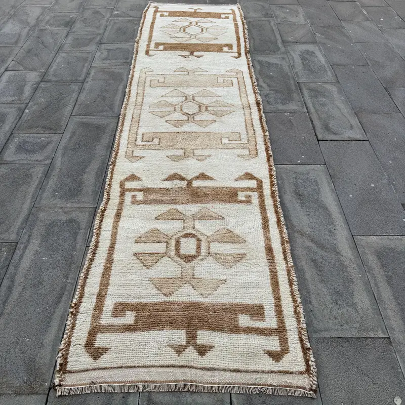 Elegant Beige & Brown Rug, 3x11.6 ft Geometric Floral