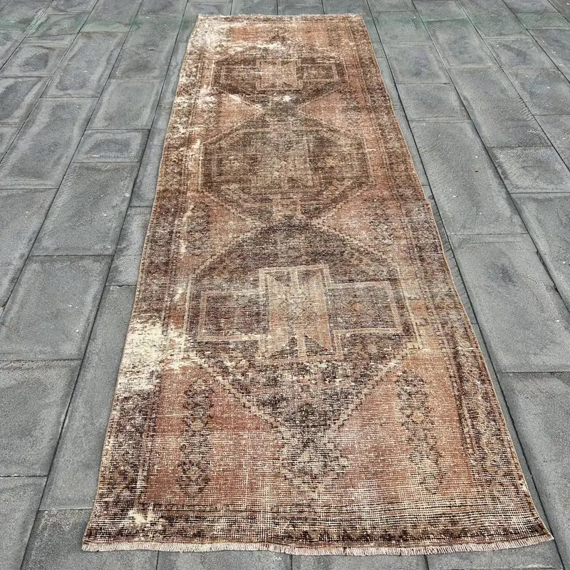 Brown, Green Animal Print Rug, 3,5x10,8 ft