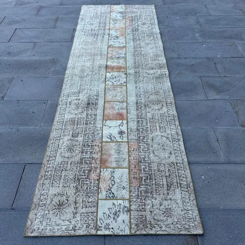 Orange & Beige Checked Rug, 3,1x9,3 ft Chic Decor