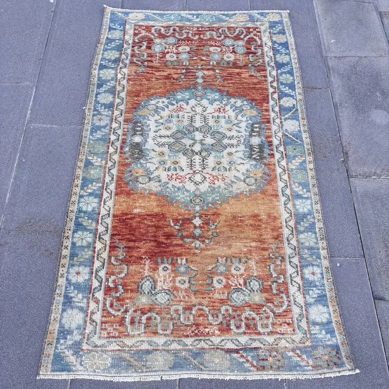 Orange & Blue Striped Rug, 2.9x5 ft Unique Design