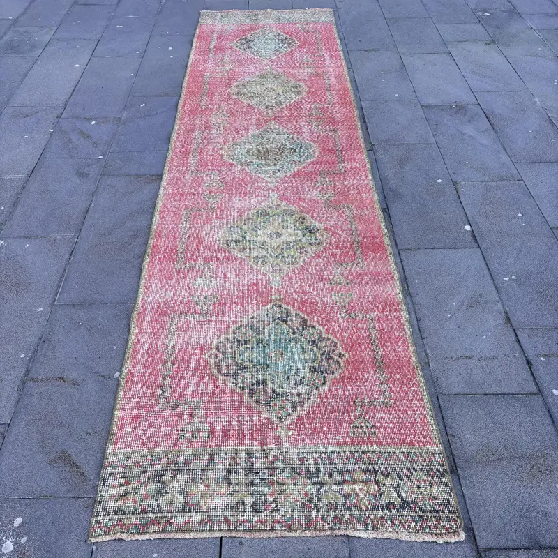Red & Green Rug, 3x11.3 ft Solid Pattern