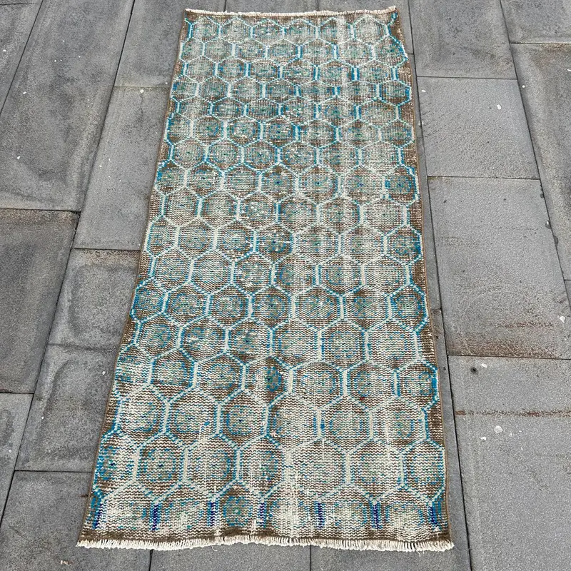 Brown & Blue Geometric Rug, 2,4x5,1 ft Chic Decor