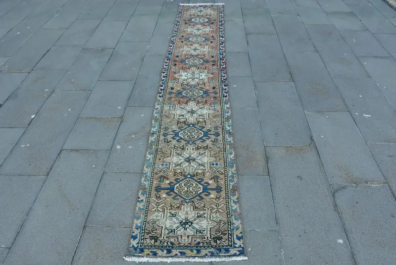 Vibrant Orange Rug, 1,7x9,8 ft Blue Accents