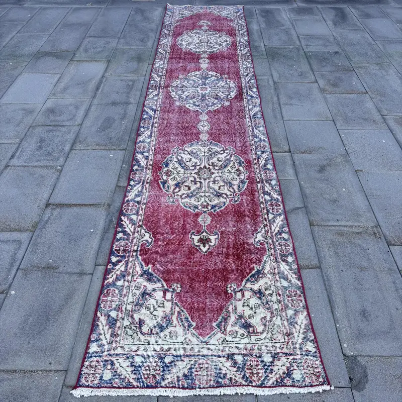 Red & Blue Patchwork Rug, 2.6x12.3 ft Elegant Decor