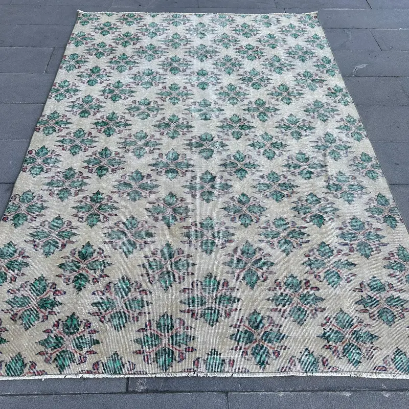Green Abstract Rug, 5,7x8,5 ft Elegant Modern Decor