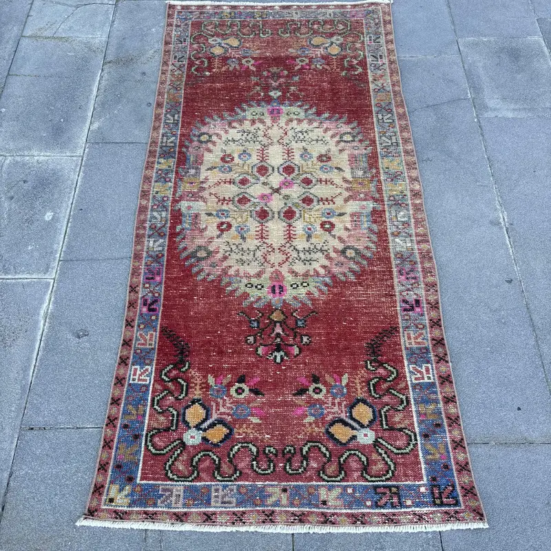 Red & Beige Polka Dot Rug, 2.6x5.7 ft Chic Decor