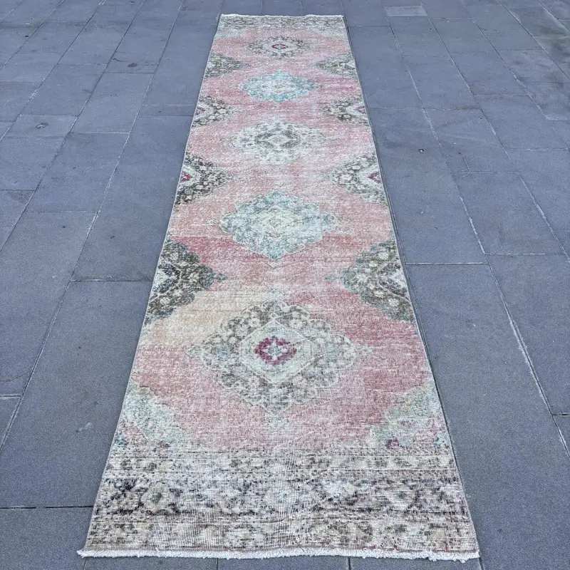 Orange & Blue Moroccan Rug, 3x12,6 ft Vibrant Decor