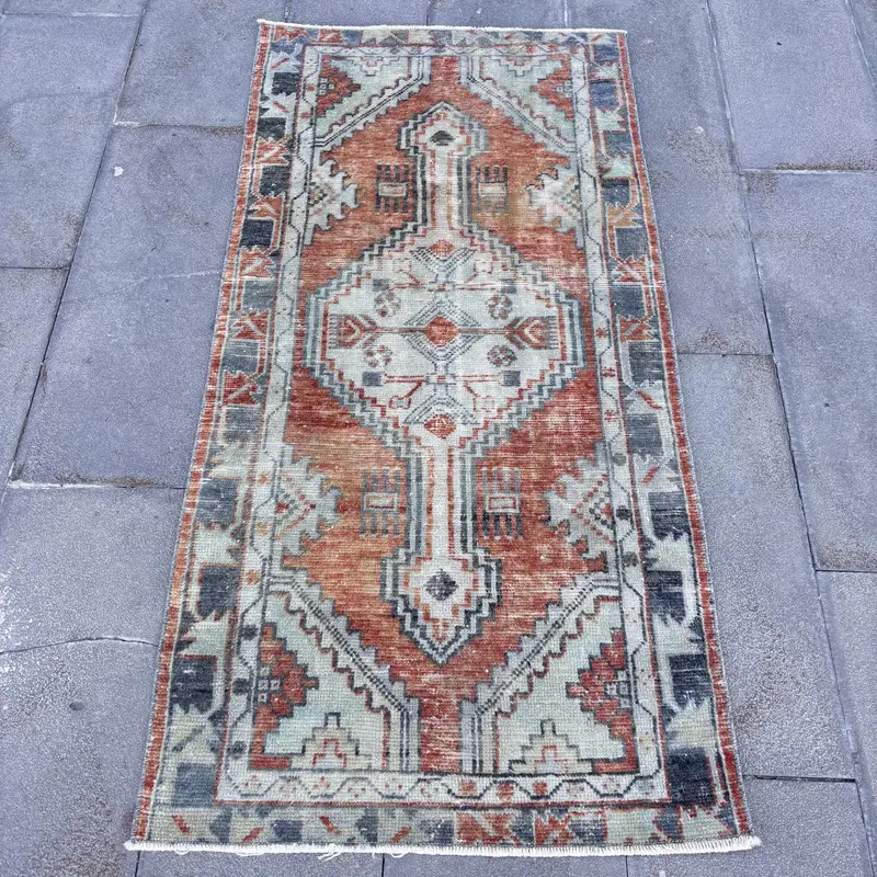 Red & Blue Geometric Rug, 2.5x5.2 ft Chic Decor