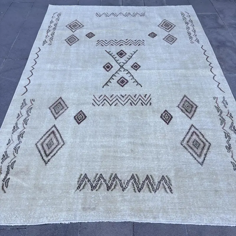 Elegant Beige & Brown Check Rug, 6,2x9,1 ft