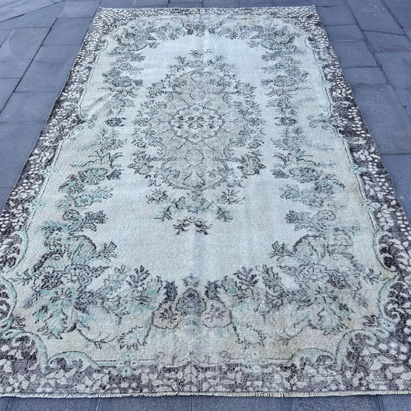 Elegant Beige & Green Rug, 6,1x10,2 ft Striped Design