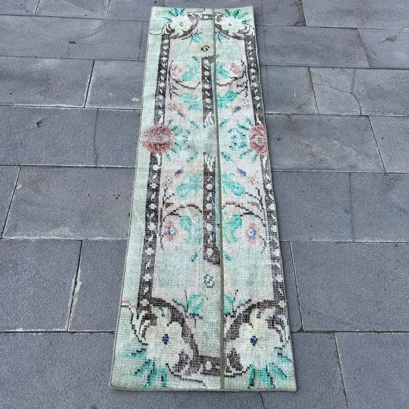 Elegant Beige Rug, 1,7x5,8 ft with Green Accents