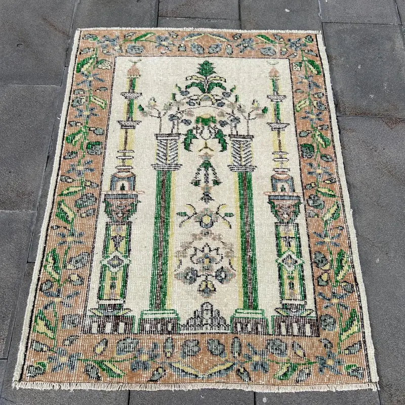 Elegant Beige & Green Rug, 2.9x3.8 ft Floral & Geometric