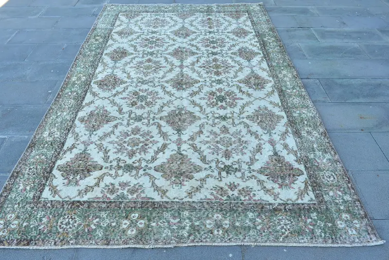 Elegant Green Rug, 5,9x9,3 ft Geometric Floral Design