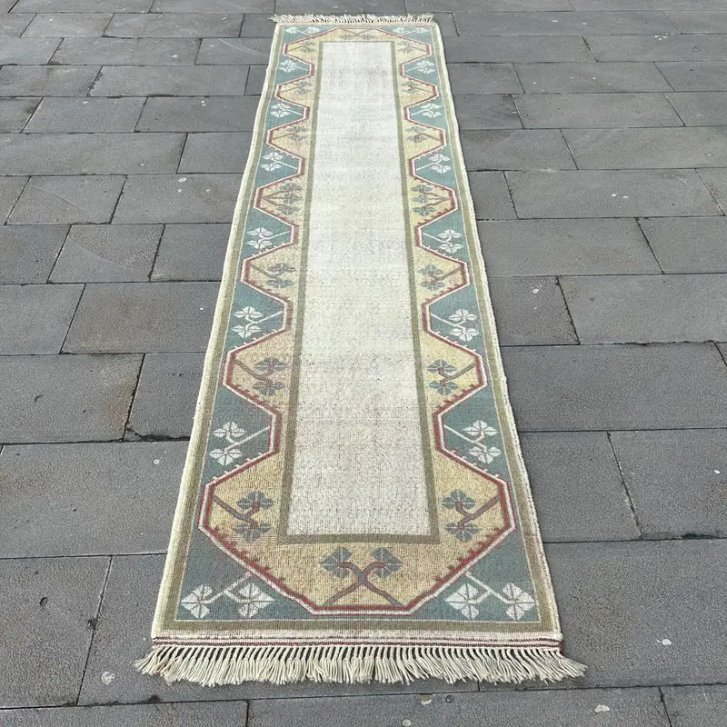 Elegant Beige Rug, 2.6x10.1 ft Abstract Design