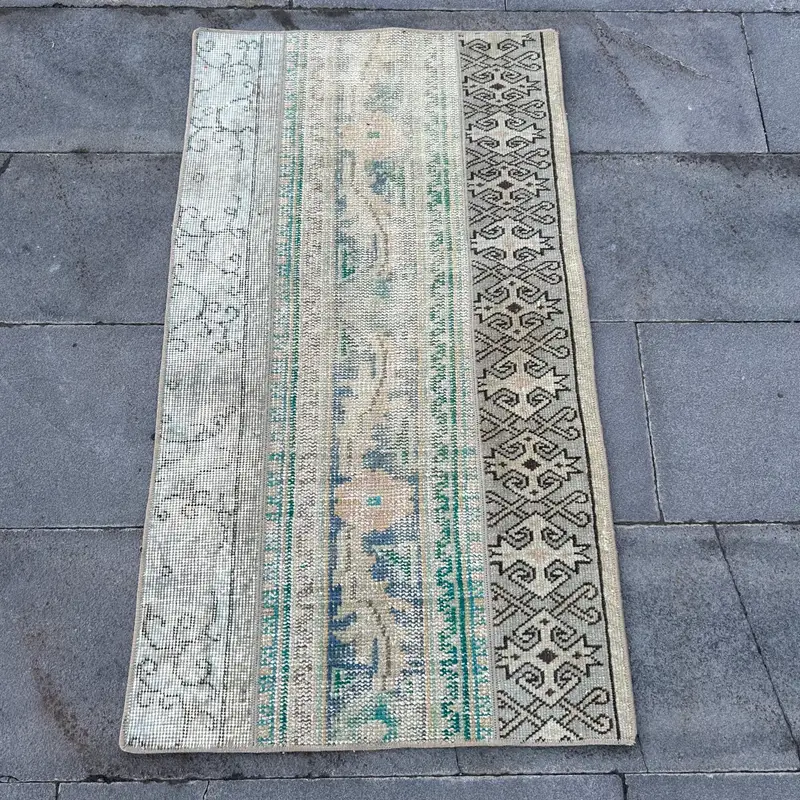 Elegant Beige Rug, Abstract Pattern 2x3 ft with Green Accents