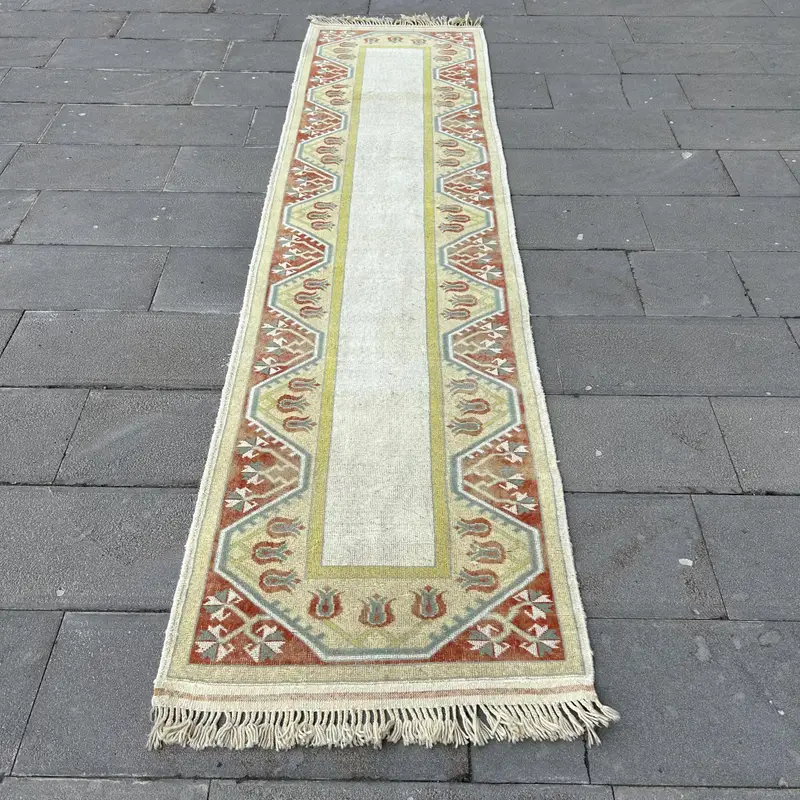 Elegant 2.6x10.1 ft Beige Rug, Chic Ikat Pattern
