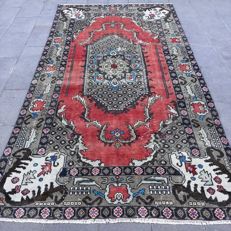 Red & Green Polka Dot Rug, 5.4x9.9 ft Chic Decor