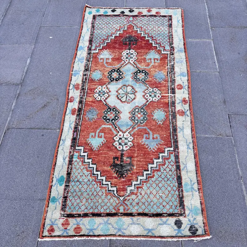 Red and Blue Bordered Rug, 2,3x5,2 ft Elegant Decor