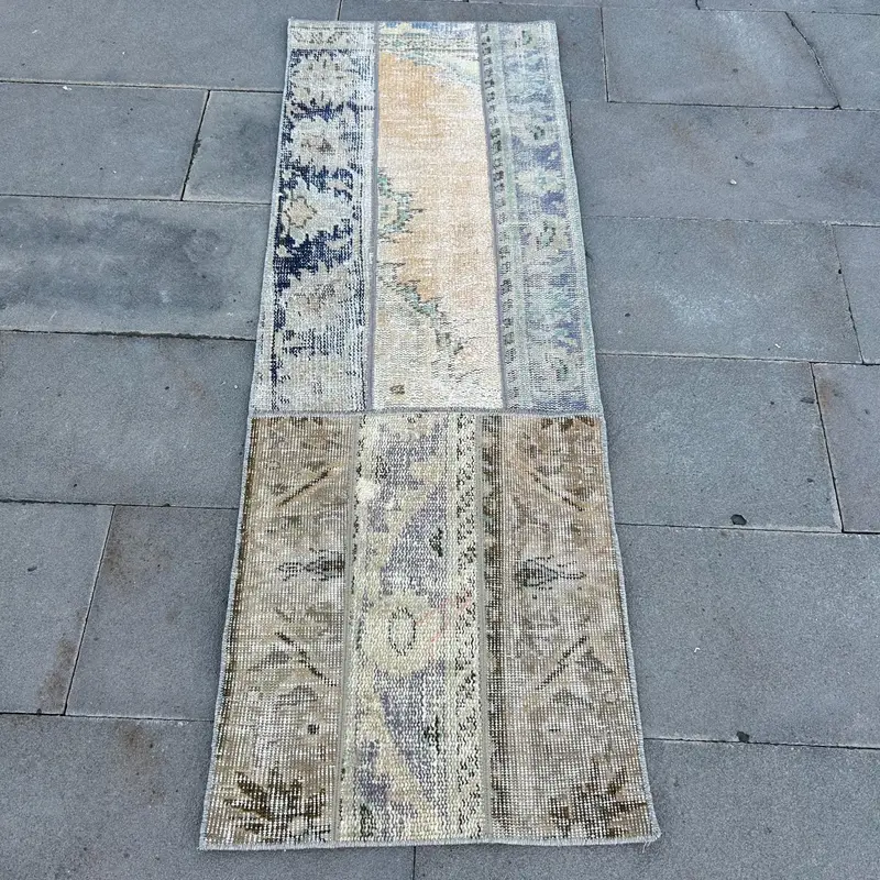 1,8x5,2 ft Brown Green Striped Rug, Unique Geometric Design