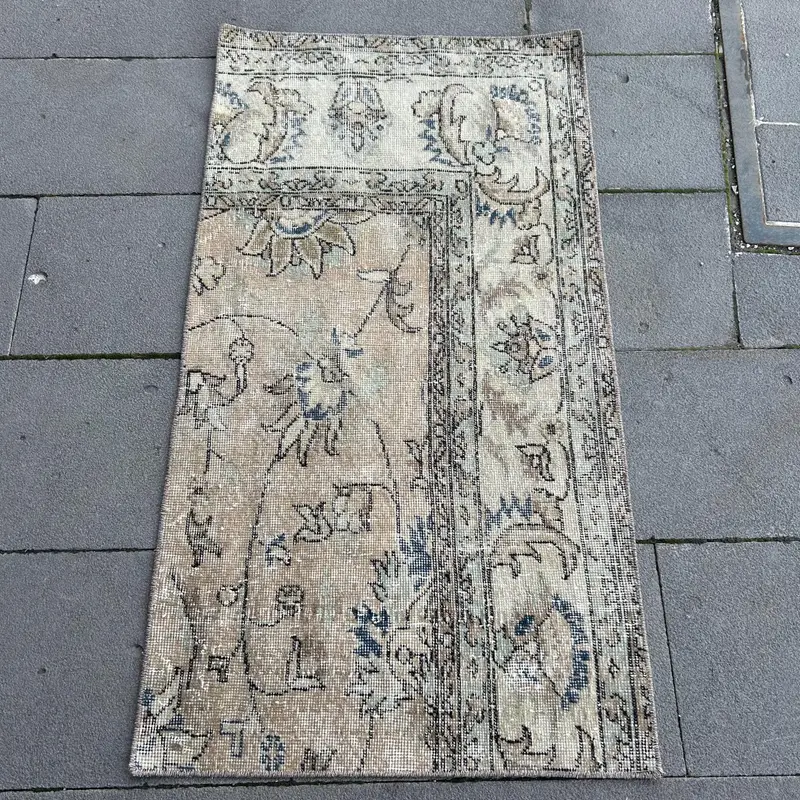Brown, Green Floral Rug, 2.2x4.1 ft Chic Decor