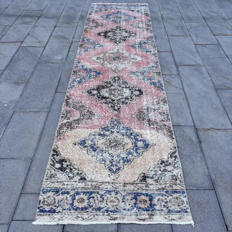 Red and Blue Oriental Rug, 3x11.6 ft Elegant Decor