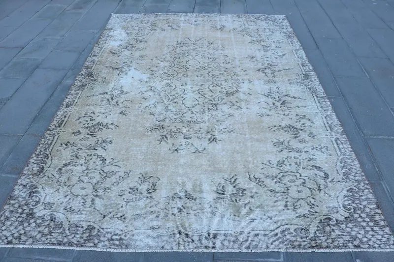 Elegant Beige & Brown Check Rug, 6.2x9 ft
