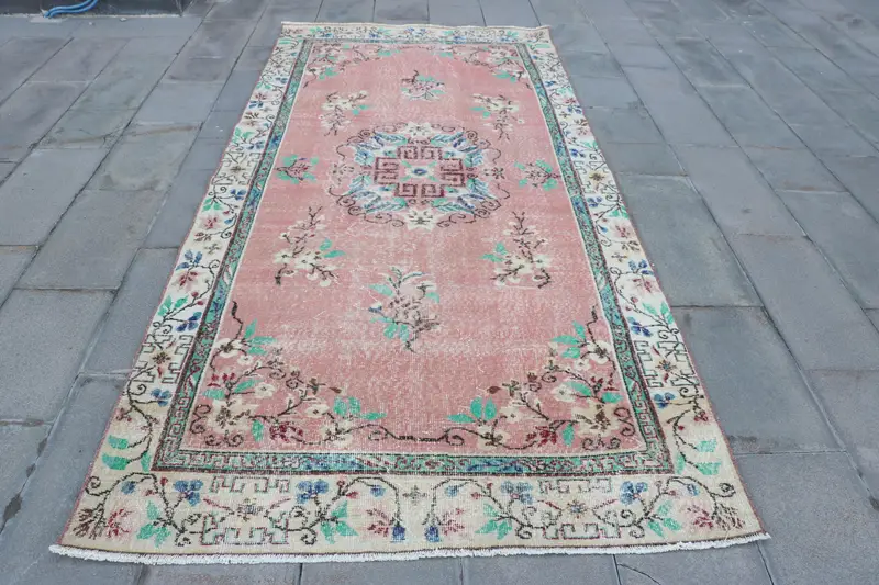 Elegant Orange & Beige Rug, 4,6x9,7 ft Floral & Geometric