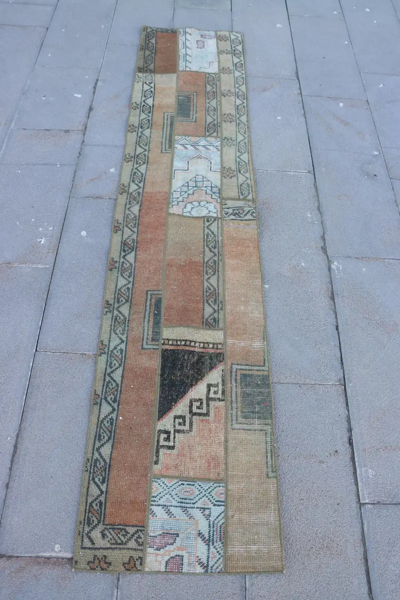 Vibrant Orange & Green Rug, 1,6x7,8 ft Ikat Pattern
