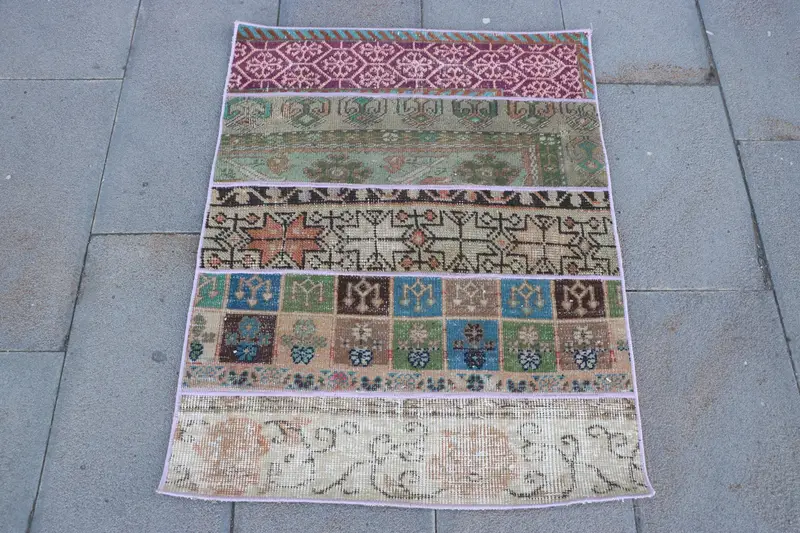 Green & Purple Patchwork Rug, 2.4x3.1 ft Chic Decor