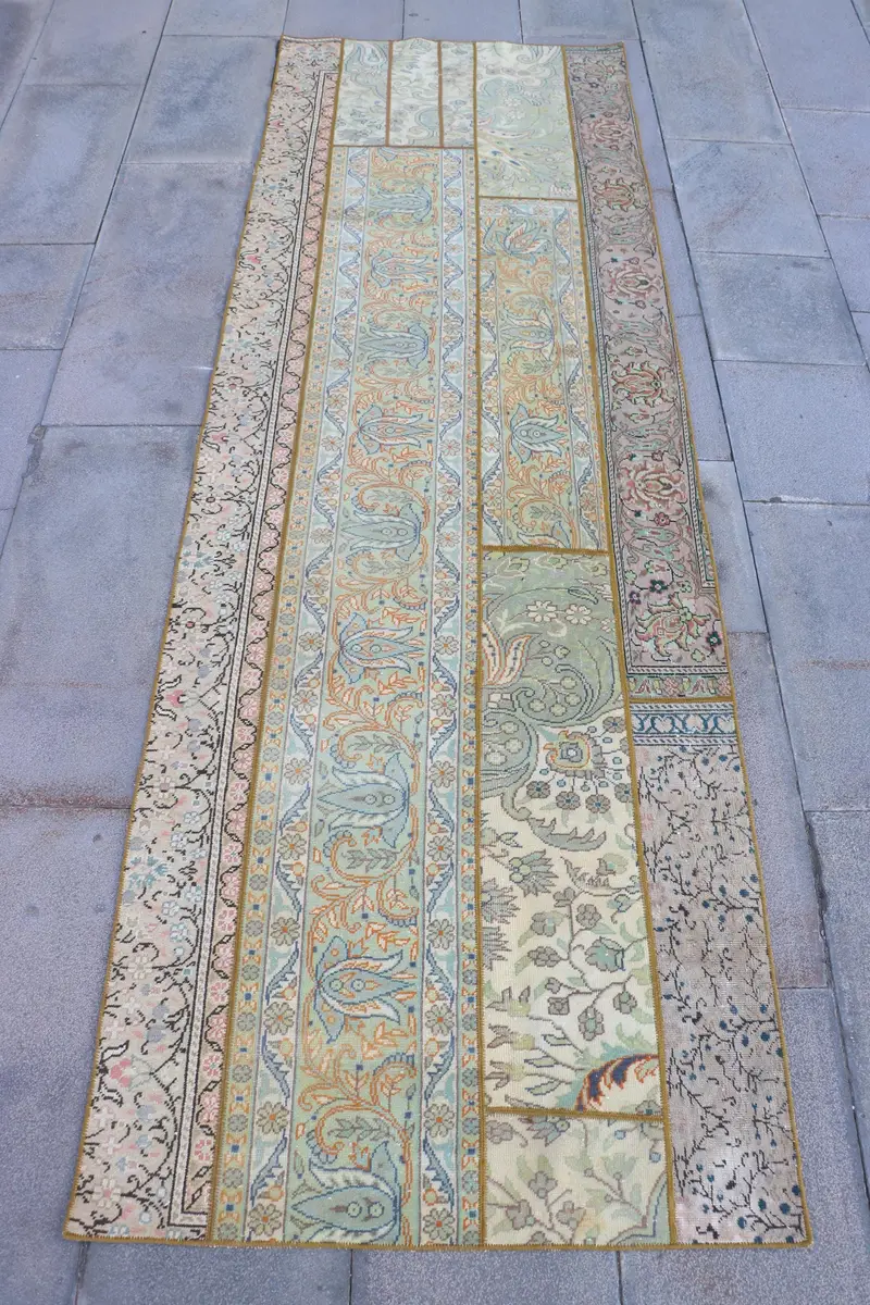2,8x8,5 ft Green Southwestern Rug, Vibrant Orange Accents