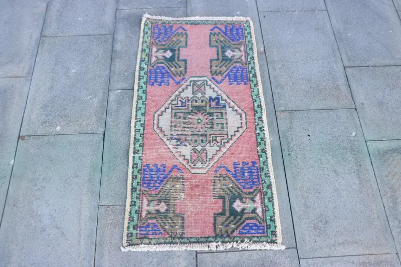 Green & Red Rug, 1.6x3 ft Striped Geometric Design
