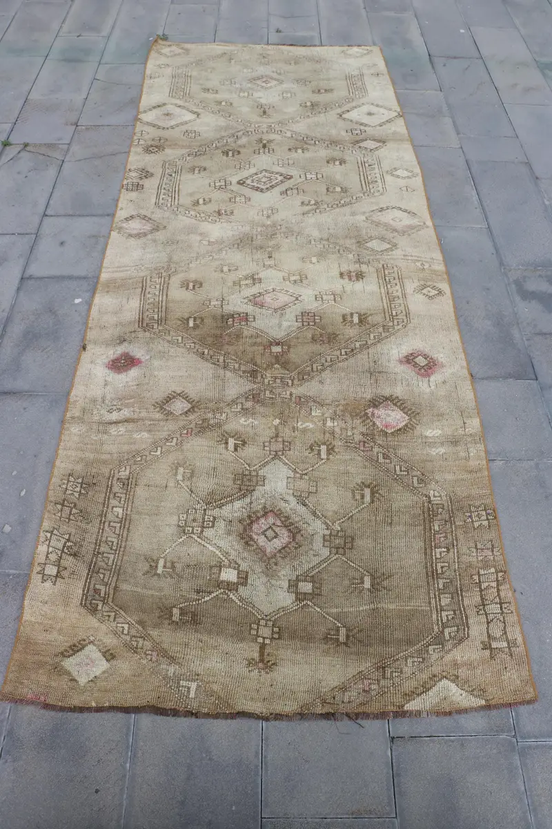 Elegant Beige & Brown Persian Rug, 4,3x11,4 ft