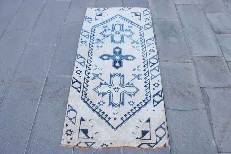 Blue 2,2x5 ft Rug, Animal Print & White Accents