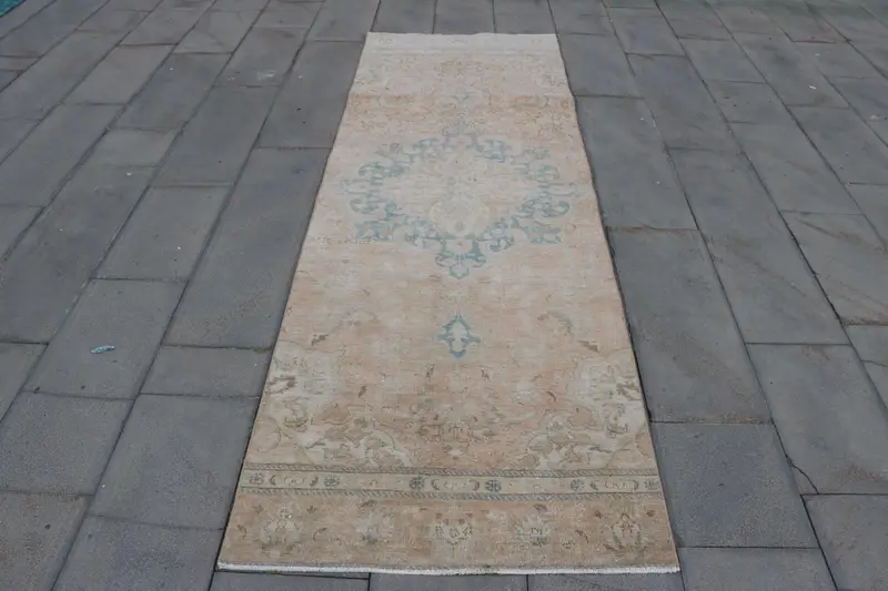 Brown Abstract Rug, 3x8.9 ft with Green Accents