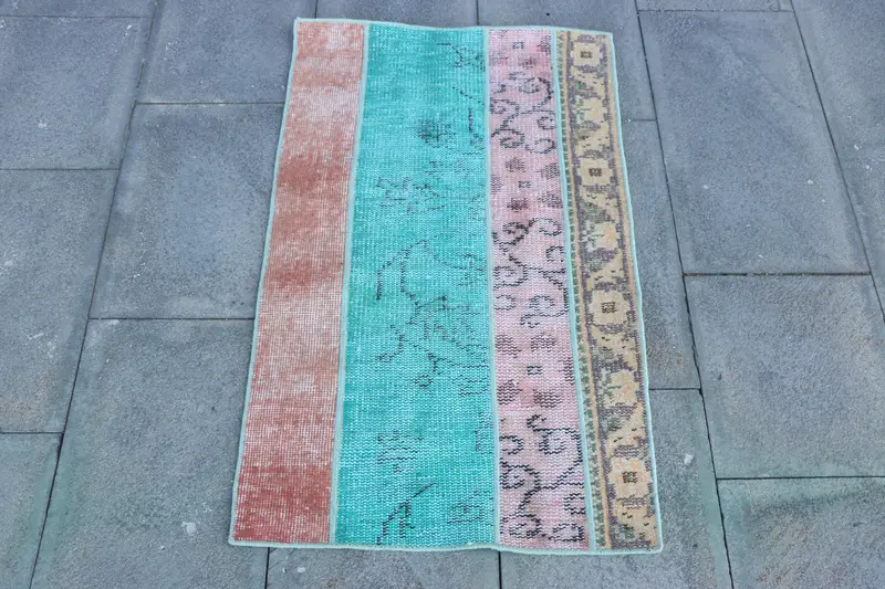 Blue Animal Print Rug, 1,9x3,1 ft with Pink Accents