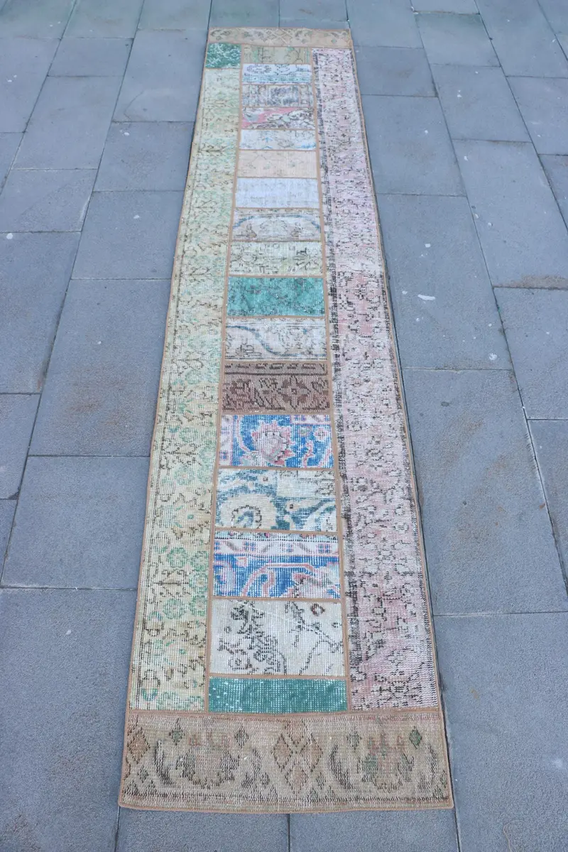Elegant Green & Pink Rug, 2x9.4 ft Persian Pattern