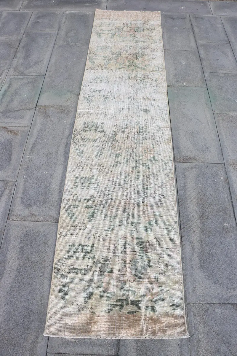 Elegant Beige & Green Rug, 2x8.9 ft Polka Dot Design