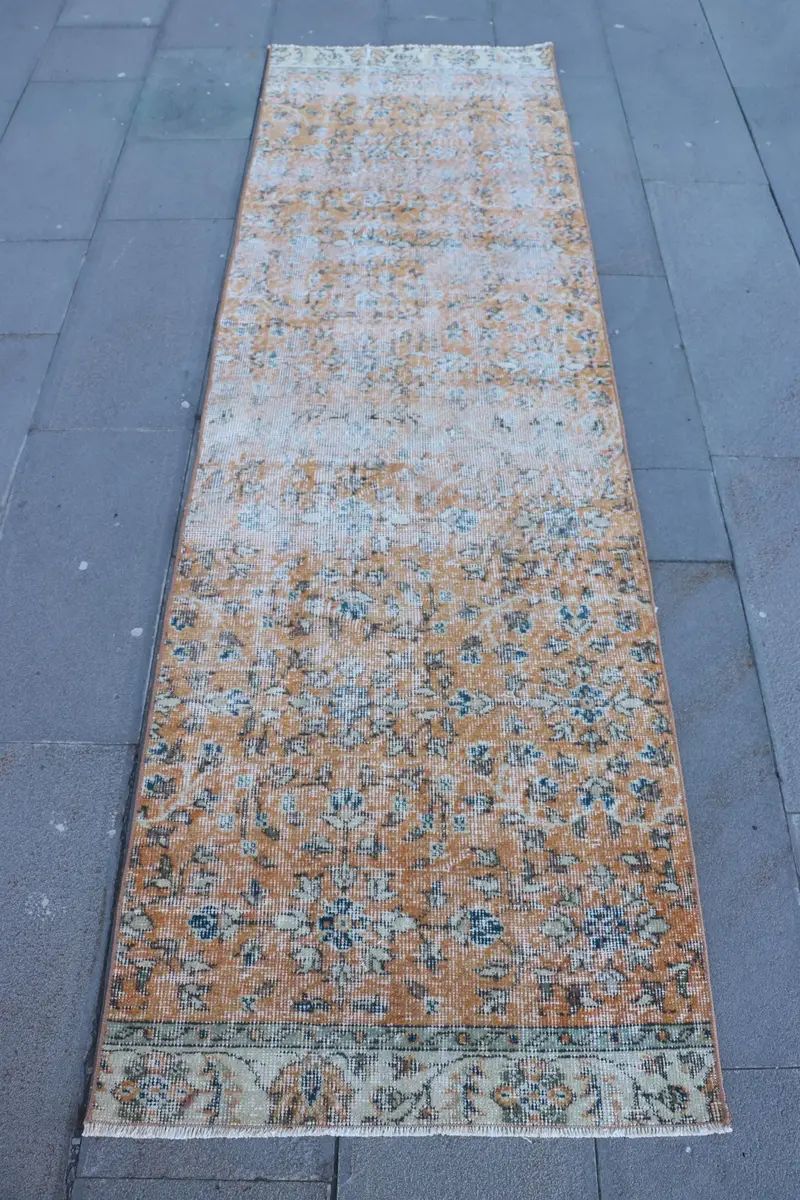 Vibrant Orange Rug, 2.5x8.2 ft Persian Pattern