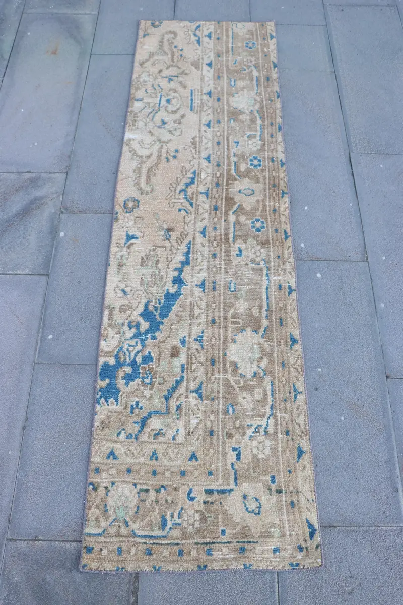 Brown & Blue Rug, 1,7x6,3 ft Floral & Geometric Design