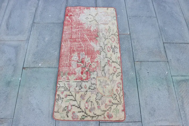 Red & Beige Rug, Geometric Floral Motifs 1,6x3,5 ft